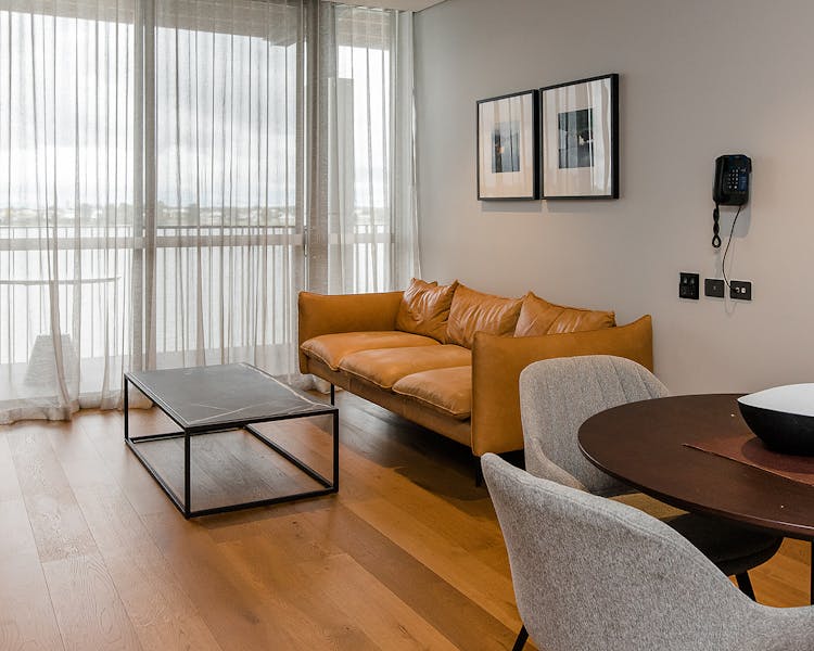 Luxurious Two Bedroom apartment featuring Lake Front views, designer décor with separate lounge and two king bedrooms, with a furnished balcony. Complimentary Wi/Fi, 49” LCD digital televisions, Two eco luxe style bathrooms with one featuring a freestanding bath. Beautifully equipped gourmet kitchens, including stone bench top and seated breakfast bar, oven & cooktop, full size integrated fridge and European laundry with washer/dryer.