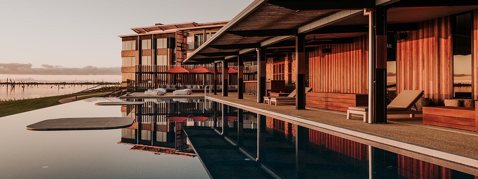 Inspired by the overland stockmen that crossed the Murray River over the Yarrawonga stock bridge and historical pubs of the region, Stock & Barrel provides guests with a bistronomy experience of fresh, locally foraged flavours. Bespoke spirits, craft beer and regional wines complement contemporary casual dining which can be enjoyed sitting by the fireplace or on the terrace overlooking the lake in a warm, welcoming atmosphere.