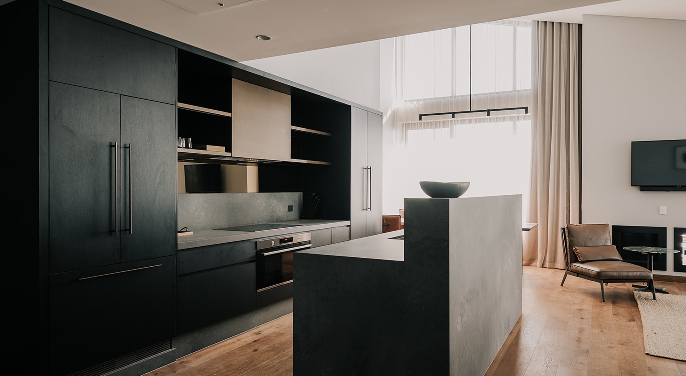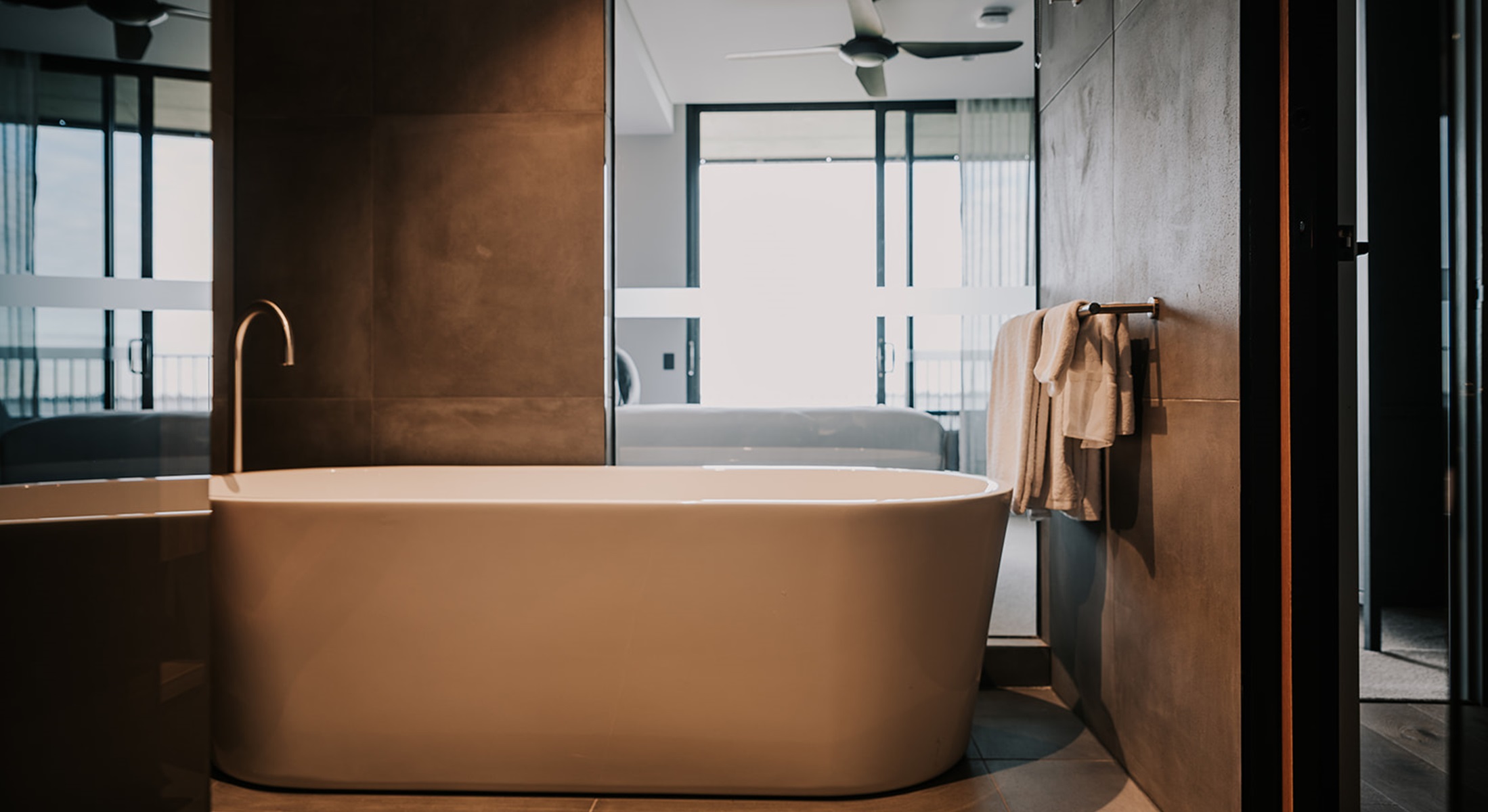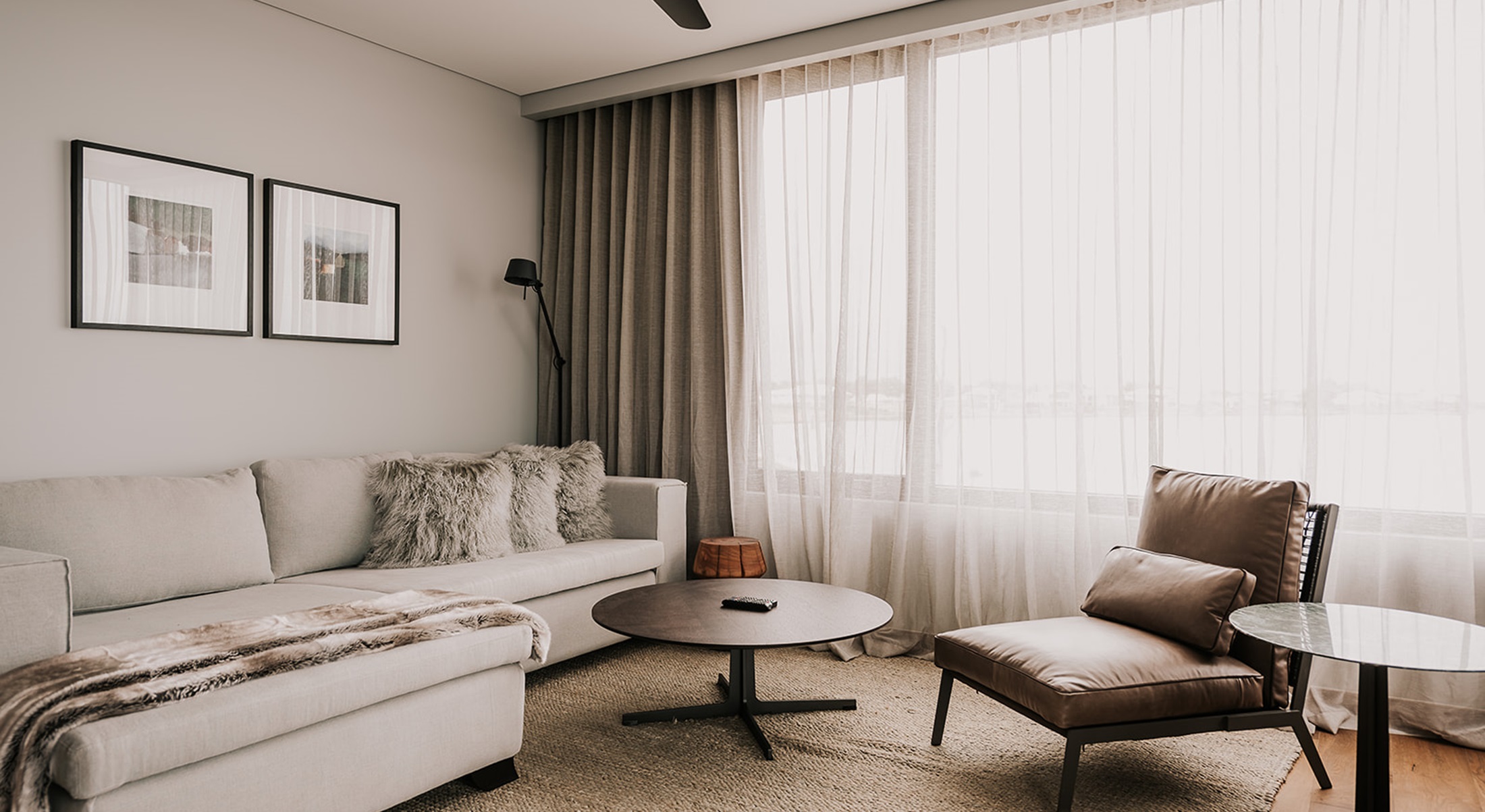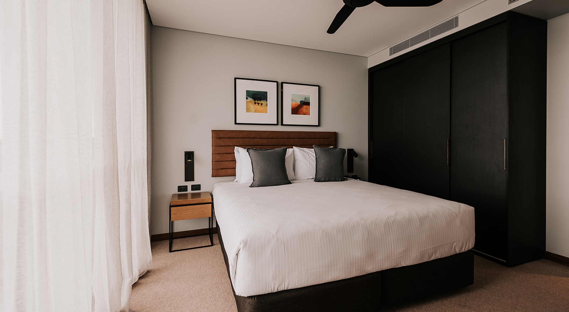 Luxurious One Bedroom Accessible Apartment featuring designer décor, separate lounge and king bedroom both with balcony access and uninterupted Lake Views. Eco style ensuite bathroom with a walk in shower.